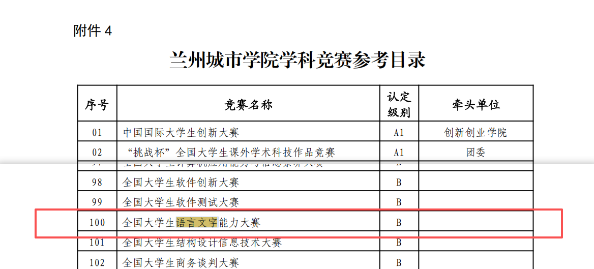 纳入兰州城市学院学科竞赛目录,定级为国家级B类学科竞赛