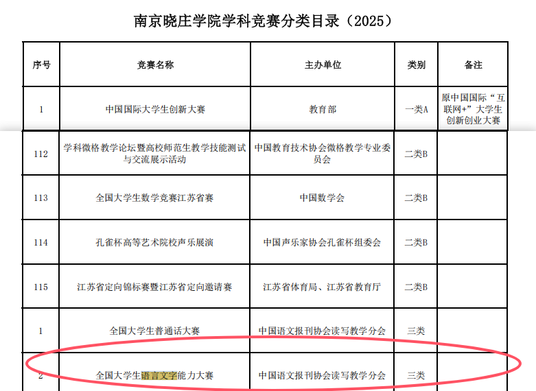 纳入南京晓庄学院学科竞赛目录,定级国家级/省级学科竞赛