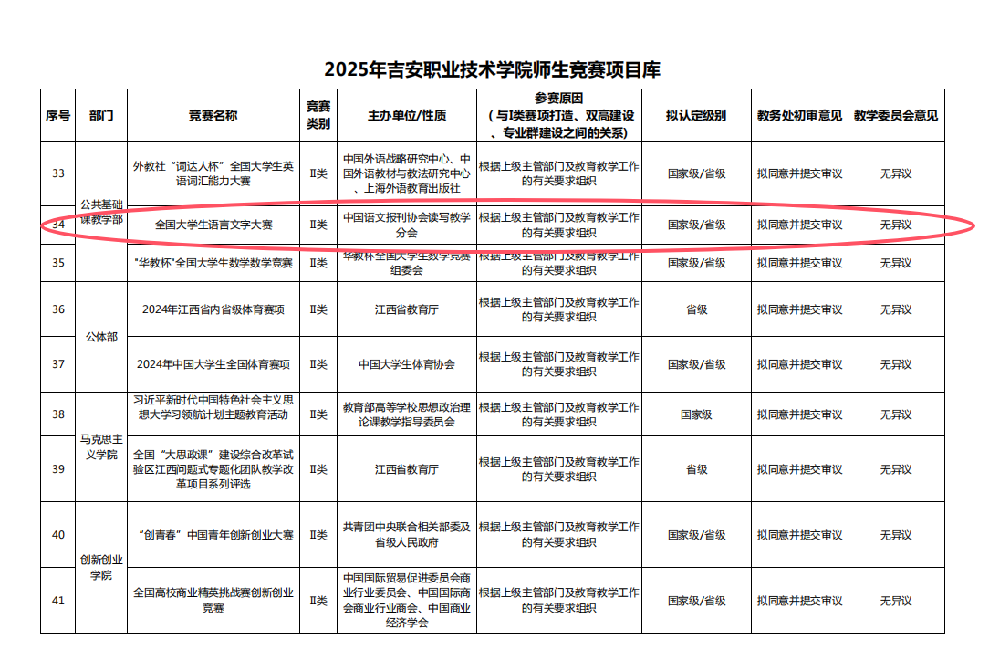 纳入吉安职业技术学院学科竞赛目录,定级国家级/省级学科竞赛